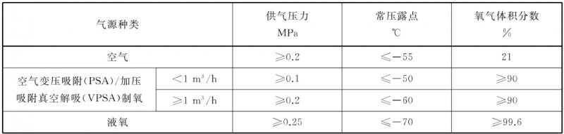 对于介质阻挡放电式臭氧发生器,给出供气气源的要求:
